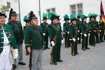 | Landesverband mit Landeskommandant Harald Neu an der Spitze. Im Roten Saal des Schlosses gab es Grußworte von Hauptmann Schweizer, OB Dr. Lothar Barth und S. K.H. und Oberst Harald Neu. Es folgte dann ein geschichtlicher Vortrag | ||||
